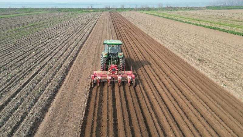在翻涌的黑色沃土间,智能农机划出五道银色轨迹。深松铲破开板结层,旋耕刀碎土细如齑粉,精量排种器以每秒5粒的速率将种子植入3厘米深的标准穴槽,镇压轮同步压实保墒。农机手刘峰紧盯驾驶室北斗终端,屏幕上实时跳动着播种密度、作业面积等数据。"这套系统就像给农机装了智慧大脑,株距误差不超过1厘米,每天能完成200亩高标准播种。"说话间,他轻点屏幕启动自动巡航,农机随即沿着电子围栏驶向下一作业区。
