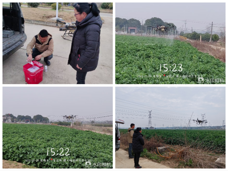 相比传统的人工打药、施肥,一台无人机1小时就能为近80亩农田喷洒农药、施加肥料,不仅大大提高了工作效率,而且无人机飞行过程中穿绳的向下气流能让油菜叶面更充分接受喷洒,药、肥更加均匀,防治效果大幅度提升。