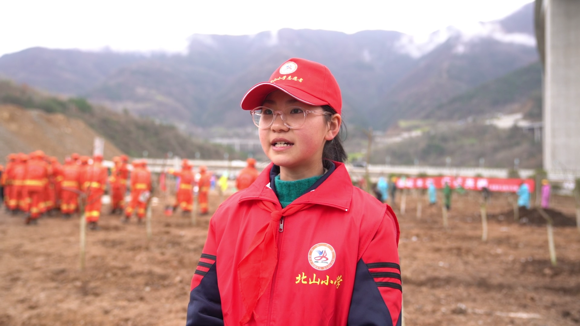 参加植树活动的还有来自北山小学的同学们,种苗围堰、提水浇灌,大家齐心协力为生态文明建设添砖加瓦。
