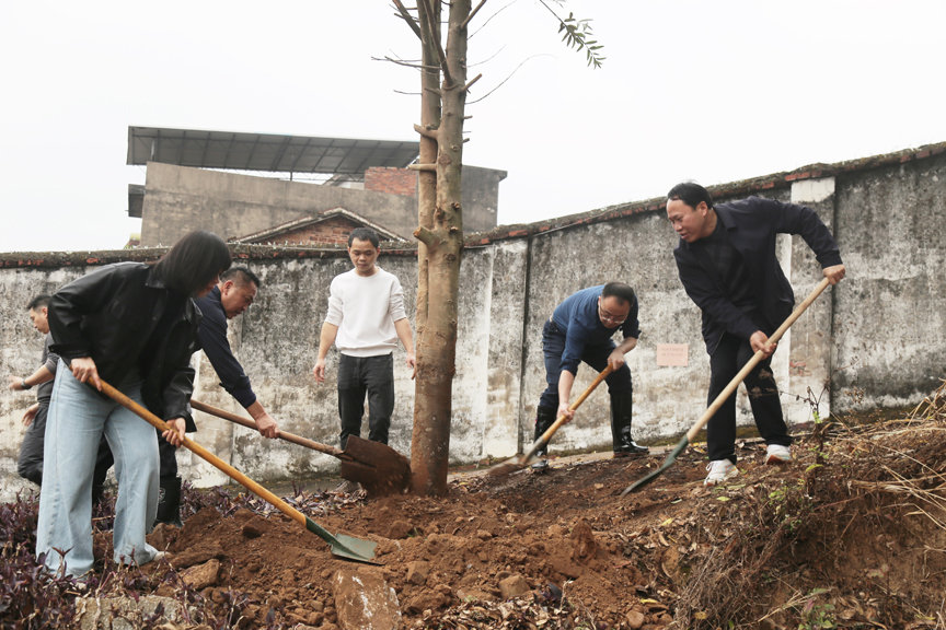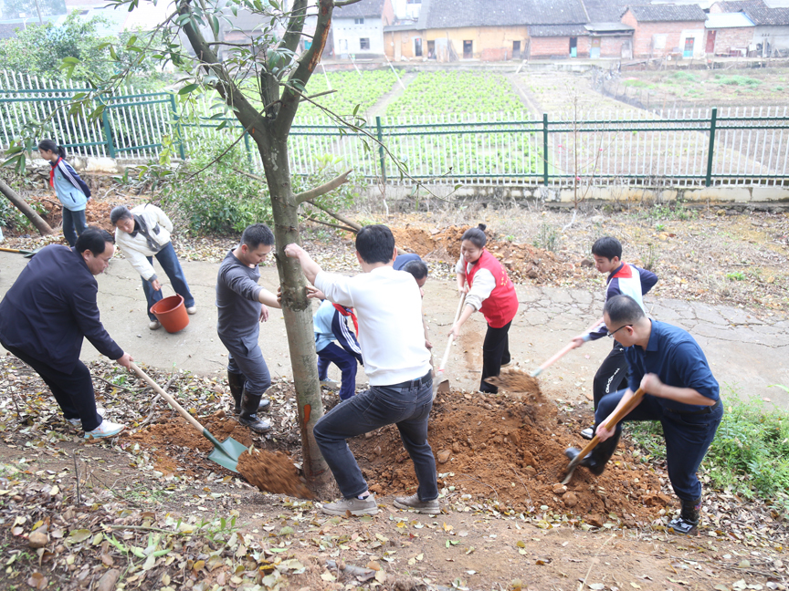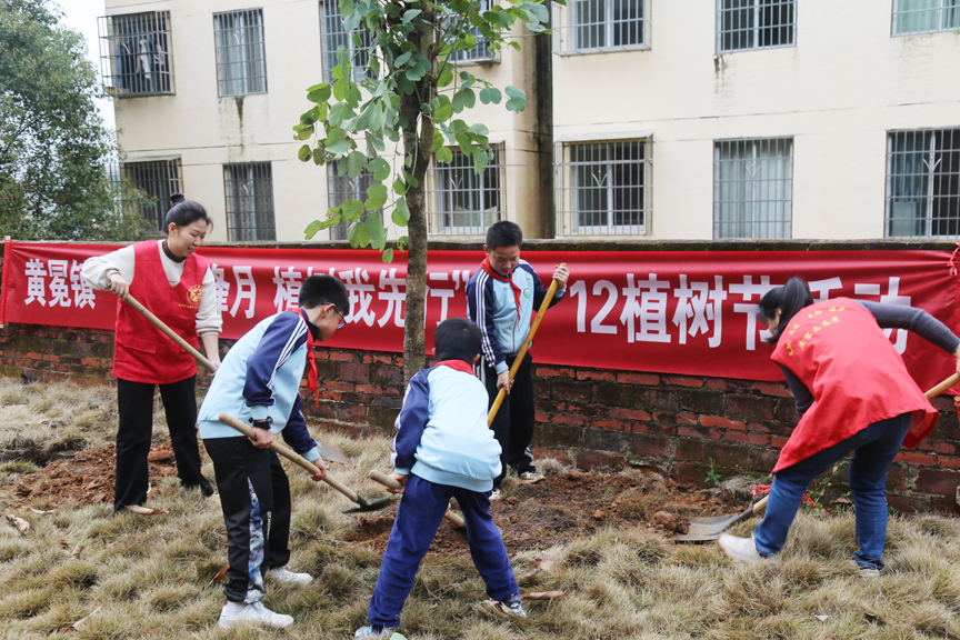 在活动现场,各单位的工作人员与黄冕小学的师生结成“植树搭档”,大家分工协作、默契配合,扶苗、培土、踩实、浇水……经过两个小时的辛勤劳动,原本裸露的坡地披上了一片新绿。活动结束时,全体参与者集体合影留念,把义务植树的画面定格在一张充满成就感的“绿色全家福”上。