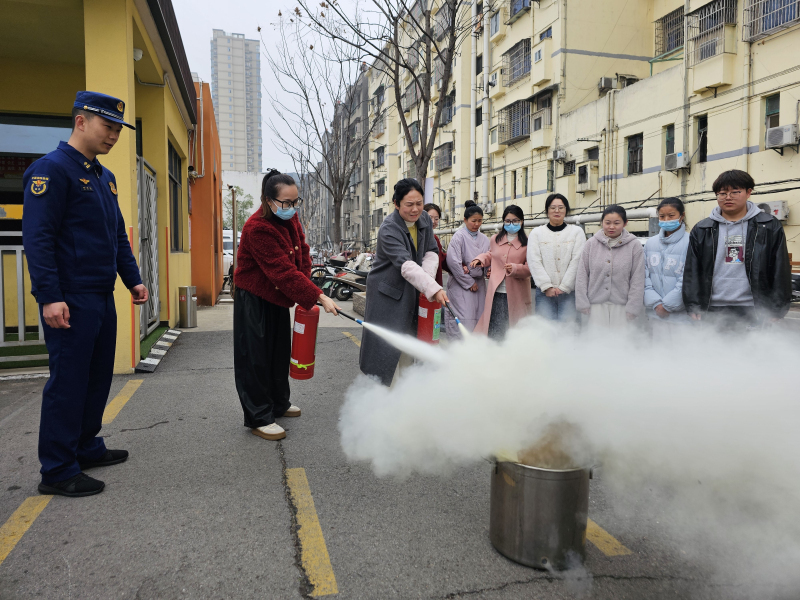 活动期间,消防宣传员还现场指导教职工进行了灭火演练。消防宣传员细致讲解了灭火器、室外消火栓的工作原理、使用方法、操作步骤以及灭火时的注意事项,现场演示了正确的灭火姿势和操作流程。随后,教职工们纷纷上前,亲自进行灭火体验。在消防宣传员的耐心指导下,教职工们逐渐掌握灭火技巧,切实提升了应对初期火灾的能力。