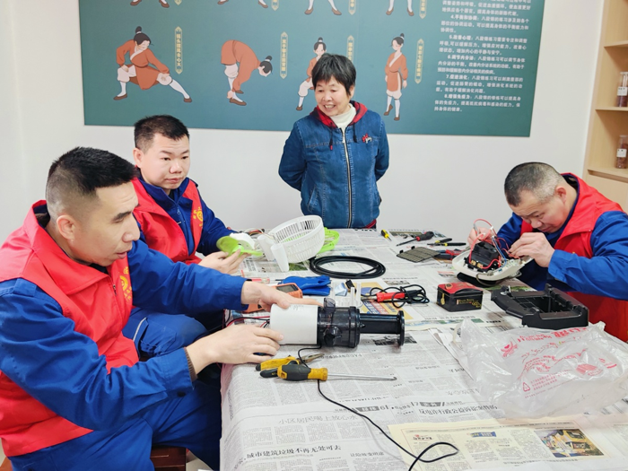 在小家电维修区,柳化氯碱公司第三党支部的技术骨干们忙碌不停。居民们拿来了故障电饭煲、电磁炉、取暖器等家用电器,他们仔细检查、认真维修,专业的技术没多一会就让一件件“罢工”的小家电重新焕发生机。