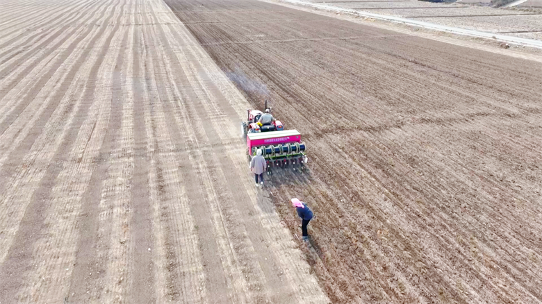 走进巷道镇利沟村,田间地头已是一派“抢春之势”。小麦播种机来回穿梭,所到之处,一粒粒饱满的春小麦种子被精准播撒进土地。播种采用小麦宽幅匀播浅埋滴灌技术,相较于传统灌溉方式,大大减少了水资源的浪费。同时,该技术还使得小麦生长更为均匀,通风透光条件更好,有效提升小麦的产量和质量,为粮食增产打下了坚实基础。“今年我一共种植小麦250亩左右,主要以引进的新品种陇春41和陇春44为主,预计亩产能达到1100斤,小麦再有两三天也就播完了。”村党支部书记、村委会主任王高荣说道。