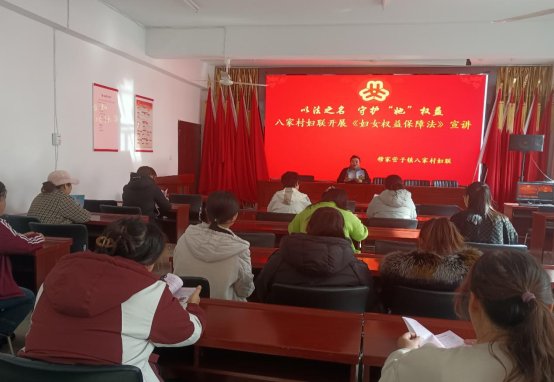 为弘扬社会主义法治精神,切实提高妇女群众的法治观念和依法维权能力,3月19日,八家村妇联围绕《中华人民共和国妇女权益保障法》《中华人民共和国反家庭暴力法》等法律法规开展了以法为名,守护“她”权益为主题的普法宣讲,引导广大妇女不断增强依法维权的意识和能力,弘扬尊重和关爱女性的良好社会风尚,进而将全村乃至全镇妇女维权月宣教活动推向新的高潮。