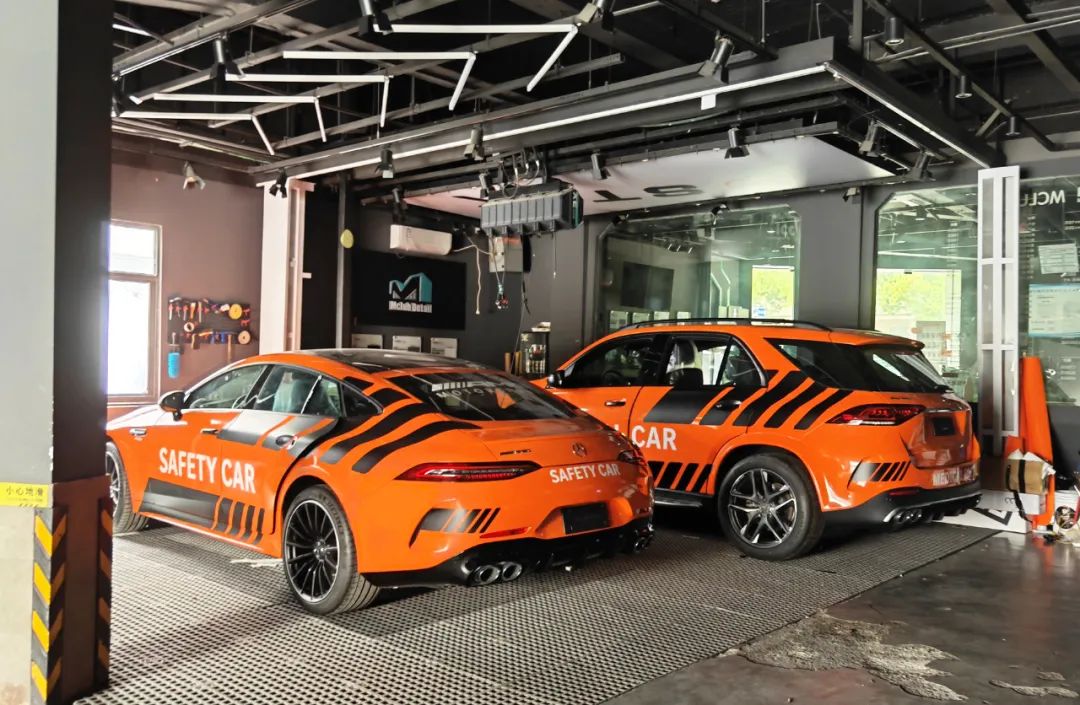 3月19日上午,记者在和硕路的一家汽车美容店看到,工作人员正在为一辆黑色轿车贴膜,车身上印着醒目的“SAFETY CAR”等字样。店内停放着多辆已完成涂装的车辆,既有赛车涂装的复刻款,也有将赛车元素与其他IP结合定制的创意涂装。