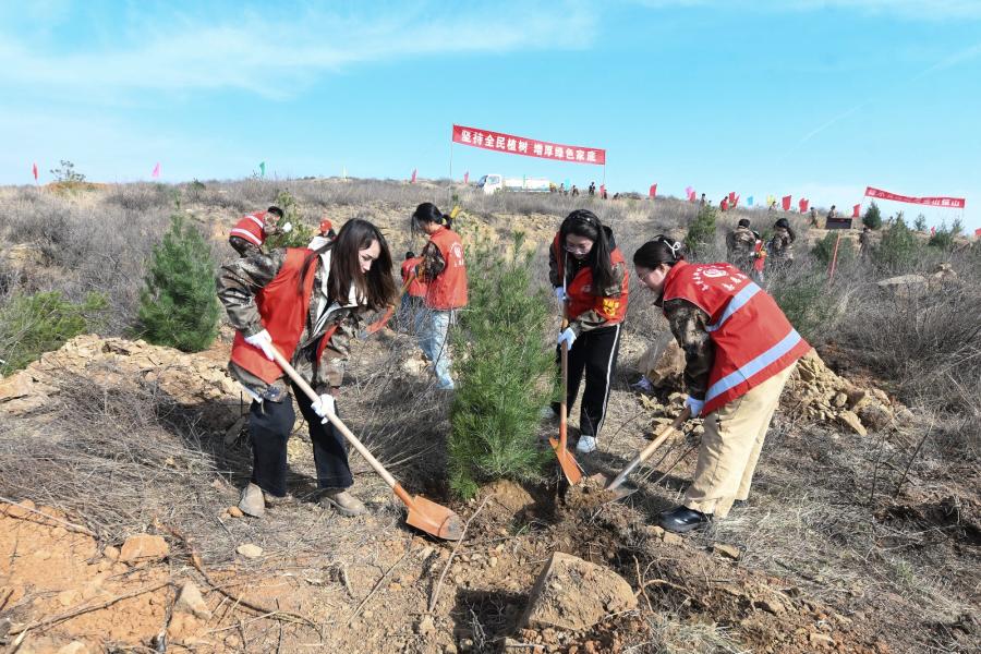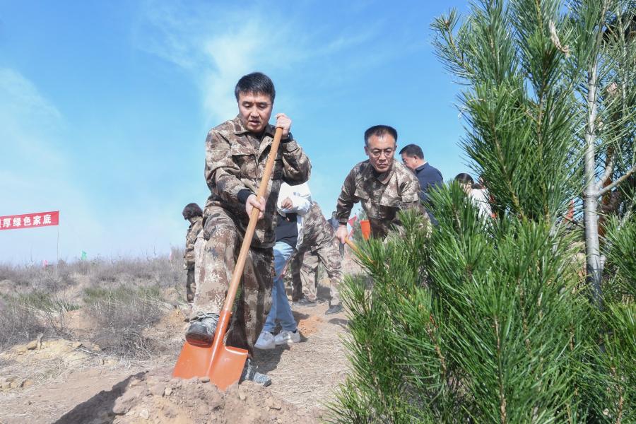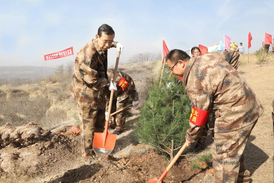 草木吐绿,万物萌发。郭强、牛志强等一行一来到植树点,就拿起铁锹紧张投入植树活动,大家分工协作、默契配合,挥锹铲土、培土围堰、提水浇灌,经过一番辛勤劳作,1000余棵新栽种的白皮松迎风挺立,孕育着勃勃生机,焕发出绿色希望。
