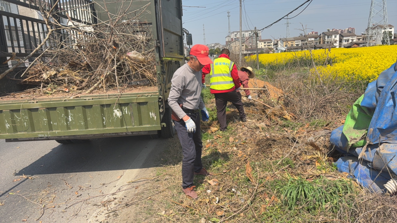 在清理枯枝过程中,工作人员小心作业,既要确保高效清除影响村庄美观与交通安全的枯枝,又要注意避免对周边环境造成二次破坏。对于清理出的大量枯枝,他们及时进行捆绑、搬运,并统一规划处理地点,防止随意堆放影响村容村貌。