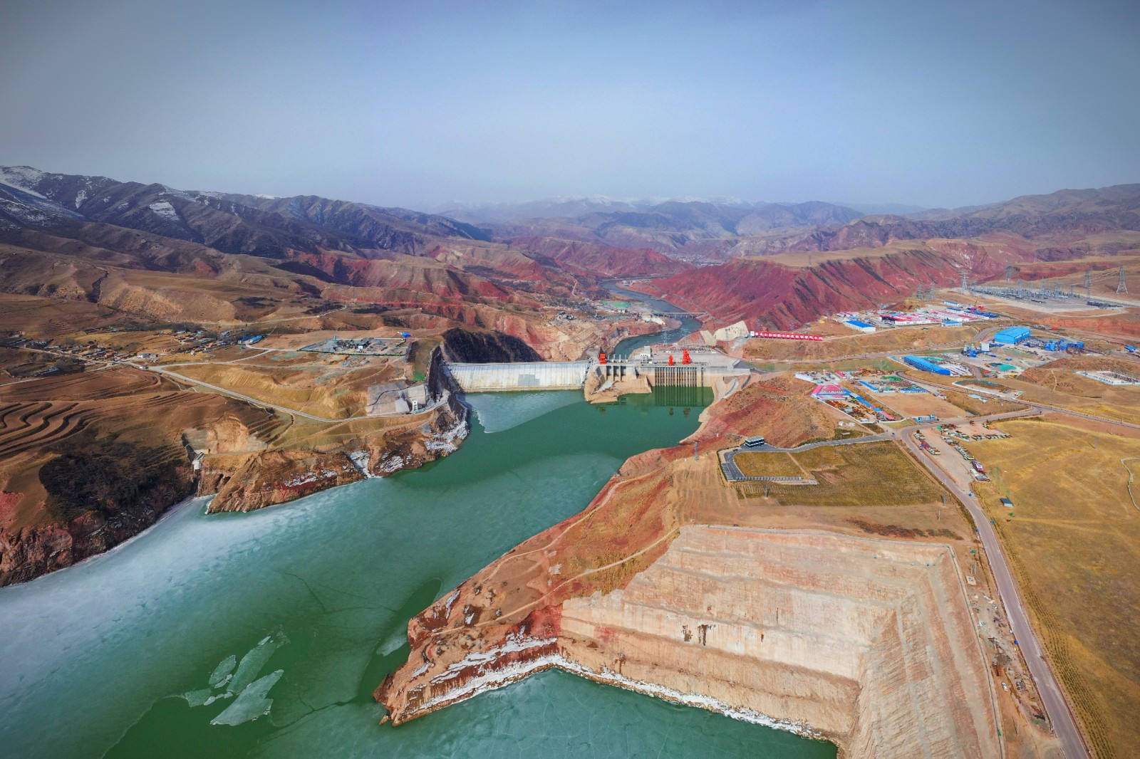 图为玛尔挡水电站坝前航拍全景图