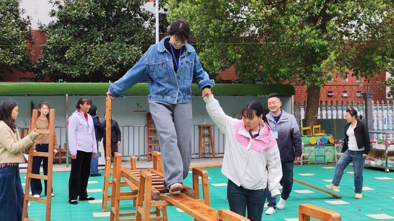?观摩中,家长们也化身“孩子王”,挑战不同的游戏,通过亲身体验,感受到游戏带来的挑战与乐趣,重返童年的快乐。