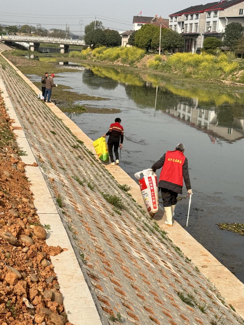 ?面对散落在河道周边草丛、坡地上的塑料瓶、包装袋等垃圾,志愿者们不畏脏累,细致清理每一处卫生死角。身强力壮的小伙子主动承担重物搬运任务,将河岸堆积的杂物分批转运至集中收运点;细心的大妈们手持工具,认真清理河滩上的细碎垃圾,确保无遗漏。同时,志愿者团队还向沿岸居民开展环保宣传,讲解河道保护知识,倡导杜绝垃圾倾倒、污水排放等行为。