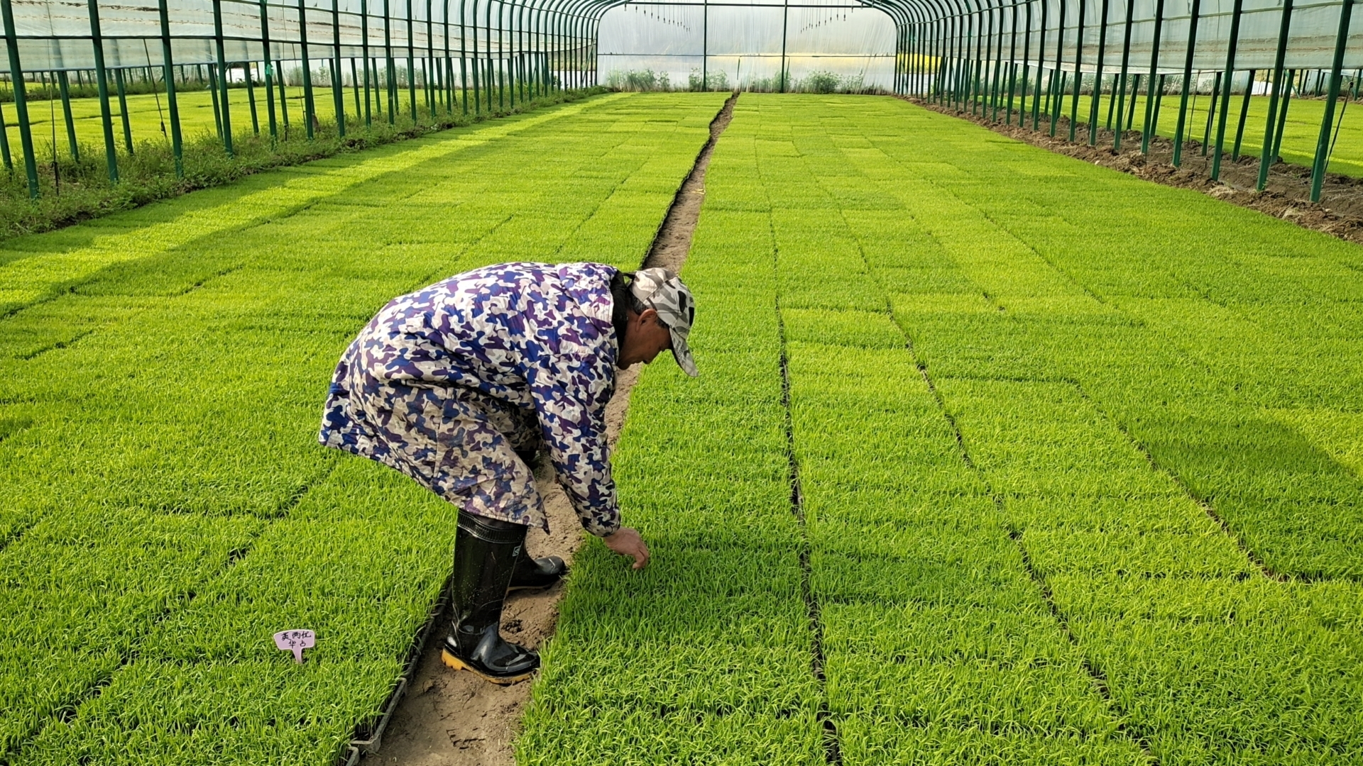 图片附件在休宁县国峰家庭农场等5家大棚里,工人们正搬运培育好再生稻秧苗盘,一个个绿色的秧苗盘整齐摆放在大棚里,等到4月中旬,再栽插到农田里。工厂化育秧再生稻,需要铺基质、撒种、覆土、配水等工序,播种完成的育秧盘将被送到恒温恒湿大棚内,进行48小时的避光催芽,再连盘带秧移至田间。