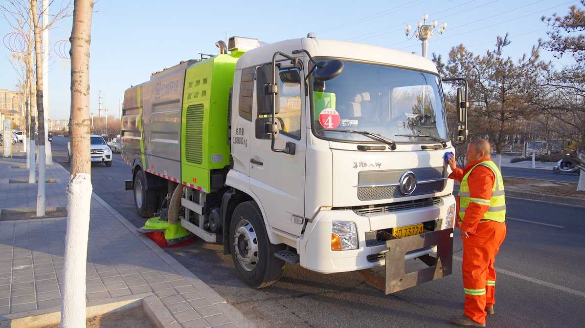 凌晨四点,亿城环境科技(赤峰)有限责任公司大型干扫车司机王俊国已经来到岗位上开始了一天的忙碌。