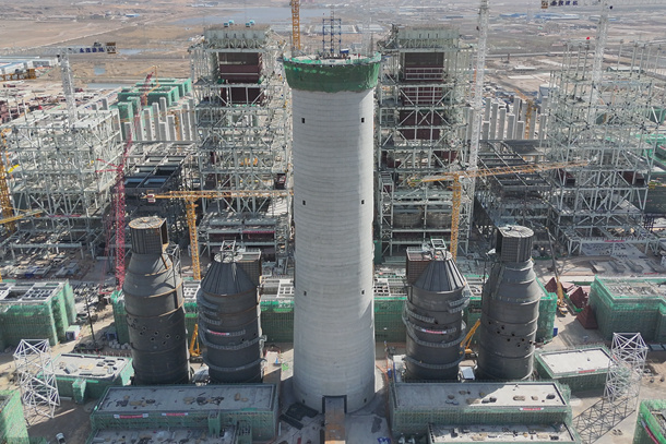 全国最大“沙戈荒”调峰机组脱硫吸收塔提前到顶