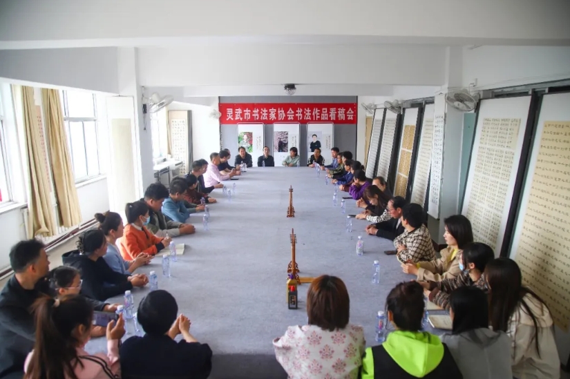 灵武市书法家协会召开备战宁夏第十七届书法篆刻临创作品展看稿会