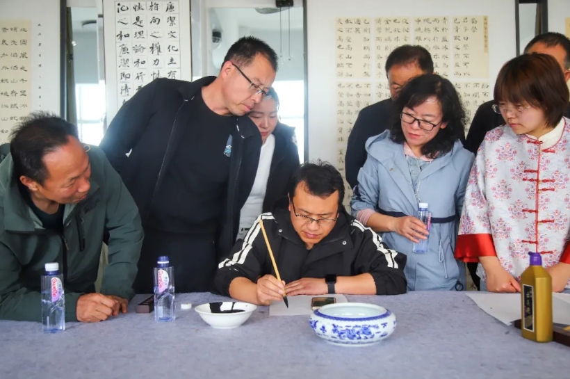 作品点评环节结束后,老师们还进行了现场示范。他们挥毫泼墨,通过实际操作,向大家展示了书法创作中的技巧和要点,让在场的书法爱好者们更直观地感受到书法艺术的魅力和精髓,大家纷纷表示受益匪浅。