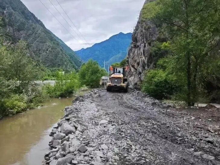 G317理县薛城镇大歧村段、狮子坪沙坝段进行抢通