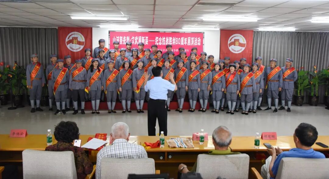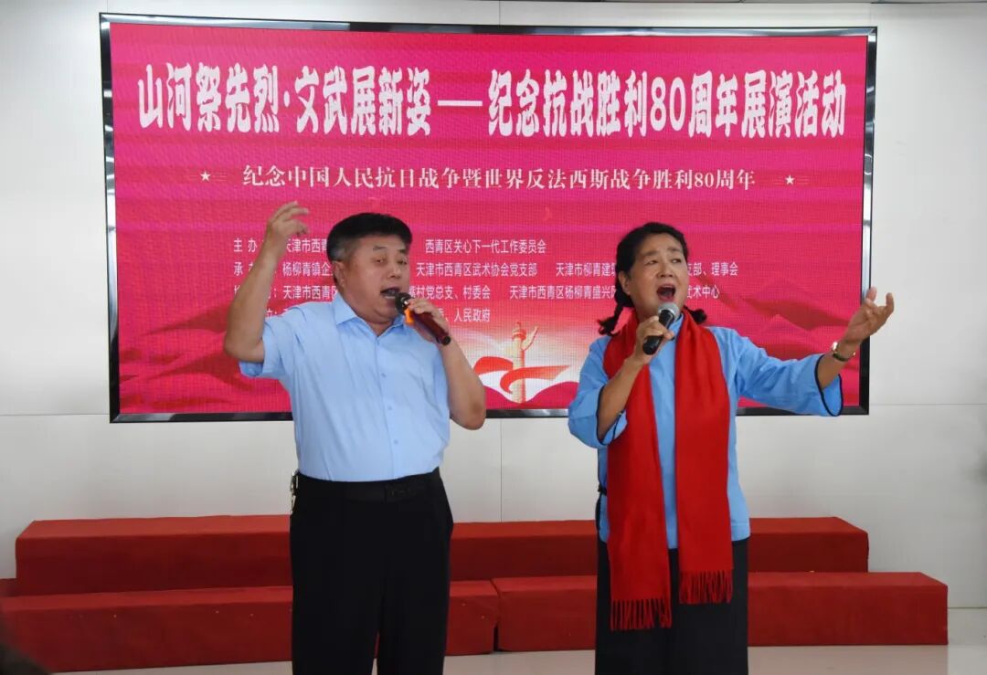 在庄严的中华人民共和国国歌声中,“山河祭先烈·文武展新姿”纪念中国人民抗日战争暨世界反法西斯战争胜利80周年活动正式拉开帷幕。西青区“五老”艺术团以民乐合奏《地道战》、评剧选段《日里思来夜里想》、男声独唱《永远跟党走》、大合唱《大刀进行曲》等节目,回顾了那段艰苦卓绝的抗战历史,抒发了对党和祖国的赤诚热爱。