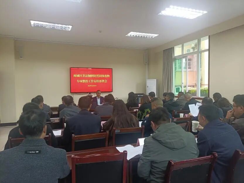 为深入贯彻落实中央、省、市关于深入开展非法倾倒处置固体废物专项整治工作部署,有效防范固体废物污染环境风险,10月29日,雨城区政府召开非法倾倒处置固体废物专项排查整治工作部署专题会议,各镇(街道)及相关部门分管负责同志参加会议。