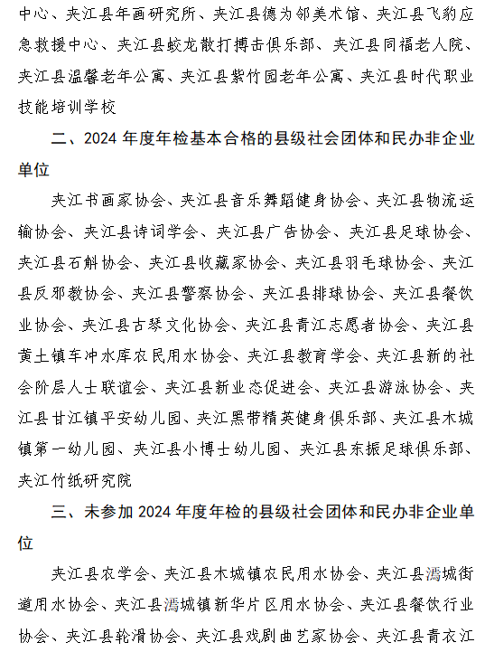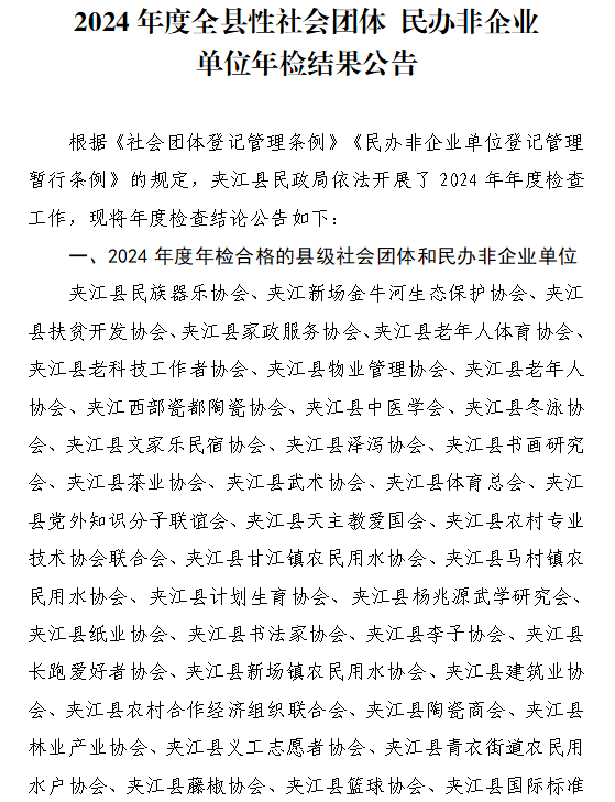 2024年度全县性社会团体民办非企业单位年检结果公告