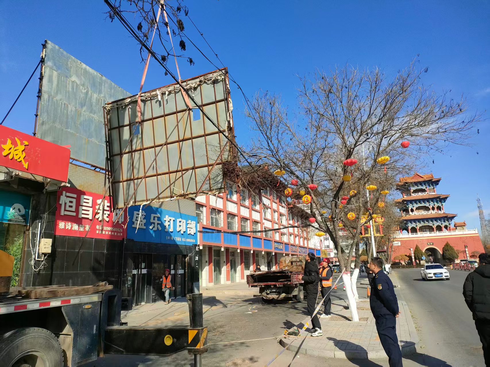 灵武市综合执法局开展楼顶单体字安全隐患专项整治行动