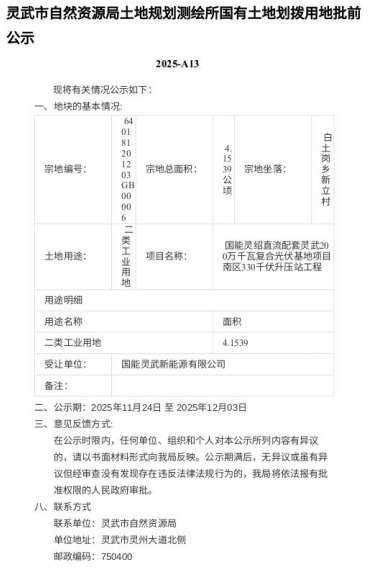 灵武市自然资源局土地规划测绘所国有土地划拨用地批前公示 2025-A13
