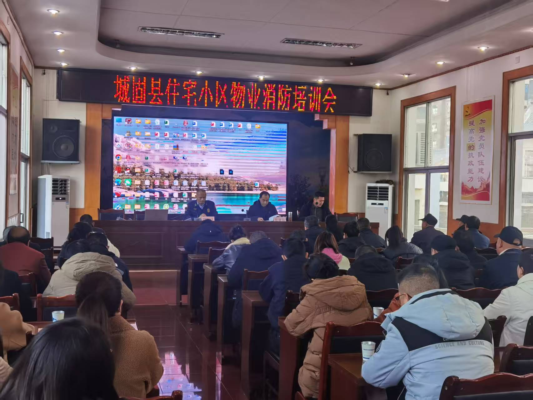 为深入贯彻落实消防安全工作要求,切实加强住宅小区消防安全管理,提升物业从业人员的消防安全意识和应急避险能力,11月28日,城固县住建局会同消防救援大队组织召开了“城固县住宅小区物业消防安全警示培训会”,对全县70余名小区物业负责人及消防安全员进行了专业的消防安全警示教育培训。