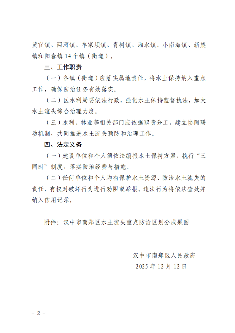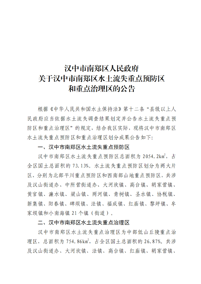 汉中市南郑区水土流失重点防治区划分成果图