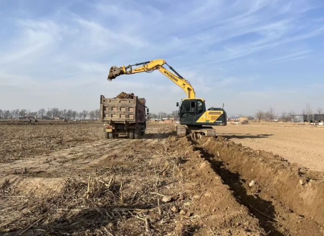 近日,记者走进新架桥村高标准农田建设现场看到,干燥平整的田地上,挖掘机、渣土车往来穿梭,有序清运废渣废土的同时整修渠道,每一道工序都有条不紊,为这片4900多亩的农田铺设“灌溉动脉”。