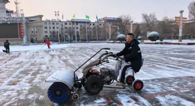 今天清晨,清雪行动全面展开。在市区灵州大道、西昌街等主干道,大型雪滚车往复作业,高效清除路面厚雪;撒布机紧随其后,精准抛洒融雪剂防止结冰,实现“机械开路、人工精扫”的高效配合。针对灵州广场、开元步行街等商业中心和人员密集区域,环卫工人采用“先主后次、先通后净”策略,优先清理人行通道和车辆出入口,用铁锹、扫帚一点点铲除残留冰雪。