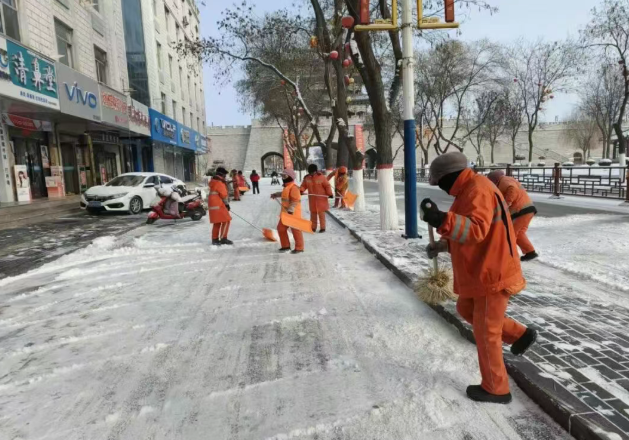 此次清雪作业中,市综合执法局充分发挥多部门联动机制优势,及时清理占道积雪、规范车辆停放,确保清雪作业无阻碍。当天中午前,全市累计出动环卫工人447余人次,装载机2台、大型除雪车6辆、撒布机3辆,抛洒融雪剂35吨。
