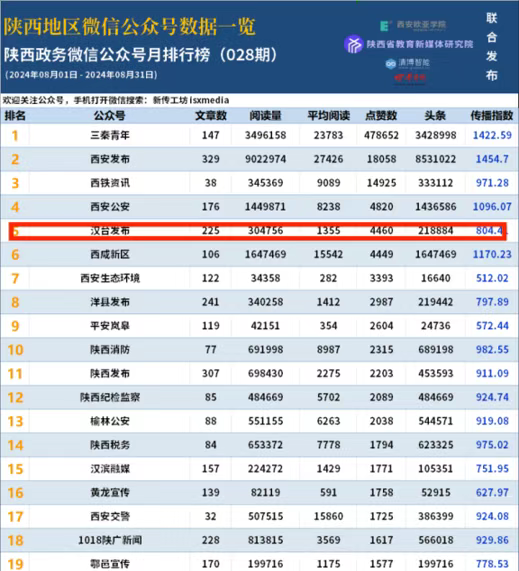 2023、2024年,“汉台发布”微信公众号位列全省政务微信综合影响力排名榜前列。