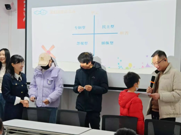 在情景模拟环节,老师邀请家长代表上台,通过设置日常家庭冲突场景,引导父母亲身体验不同沟通方式带来的情绪反应。活动现场,父母们认真倾听、积极互动,在实践演练中学习如何用智慧的爱陪伴孩子成长。