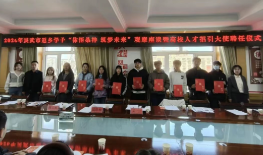 座谈会上,相关部门详细解读了高校毕业生就业创业及人才引进政策,现场为10名高校学子颁发人才招引大使聘书,进一步扩充了灵武人才招引队伍。交流环节,学子们结合观摩感悟与自身经历,畅所欲言,围绕就业创业、人才培养、志愿服务等方面为家乡发展建言献策。新聘任的高校人才招引大使杨语童表示:“我将认真了解家乡产业发展,积极宣传家乡政策,努力吸引更多优秀青年人才为家乡建设添砖加瓦。”