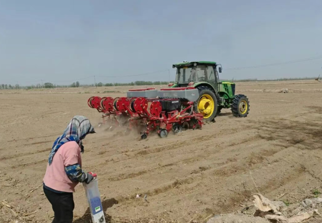 在临河镇红柳湾村的连片田地,记者看到播种机轰鸣不停,匀速穿梭在田间完成播种作业,农户们分工协作,有的照看农机,有的巡查播种情况,整片田野满是热火朝天的劳作氛围。