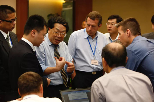 2011年,包起帆(左三)在美国与各国专家讨论国际标准。