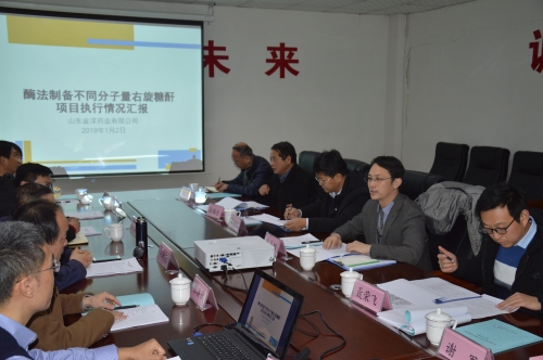 专家组先后来到淄博凯华农业科技有限公司糠醛连续水解清洁生产项目和山东金洋药业有限公司酶法制备不同分子量右旋糖酐项目现场,实地查看了与项目密切相关的设施设备和实验室改建情况,详细了解了项目的组织实施情况。