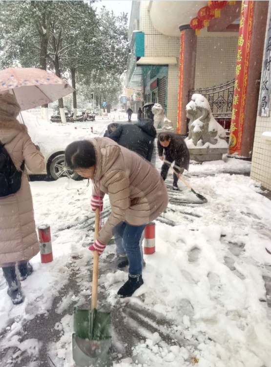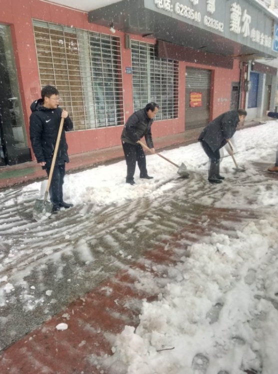 “紧急通知:根据局领导指示,请财政局全体志愿者速到局机关门口集合,上路段铲冰扫雪,各支部书记务必组织好本支部党员组成突击队,完成财政局负责路段的冰雪铲除工作”。30日下午,风雪稍小,为保障道路畅通和群众出行安全,防止因雪天地滑造成的意外伤害,县财政局响应县委县政府号召,组成铲雪除冰先锋队,在天岳大道责任路段开展铲雪除冰活动。