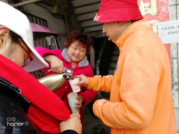 扫雪除冰活动让群众深受感动,许多市民为扫雪的干部职工送来了防寒姜水汤。学生也主动加入铲冰行动。县铁牛学校六年级学生伍雯萱在得知全县开展除冰铲雪活动后,随着母亲来到道路上,和大家一起投入除冰铲雪活动。