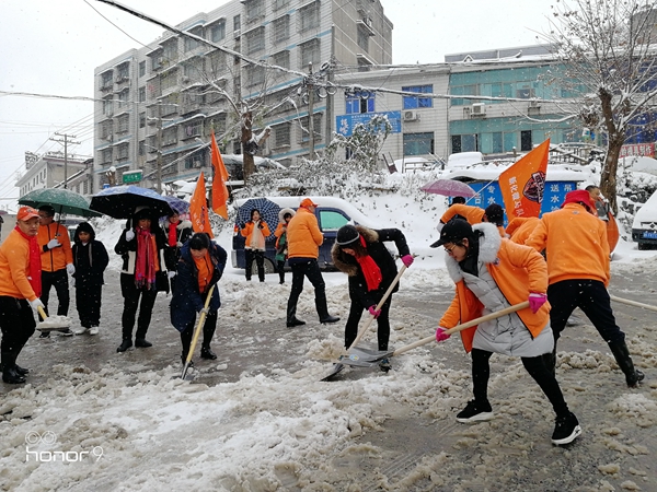 12月30日,县委、县政府号召全县党员干部、人民群众迅速行动起来,抓住雪停后的有利时机,开展积雪清扫活动,切实降低冰冻灾害影响,保障大家出行安全。