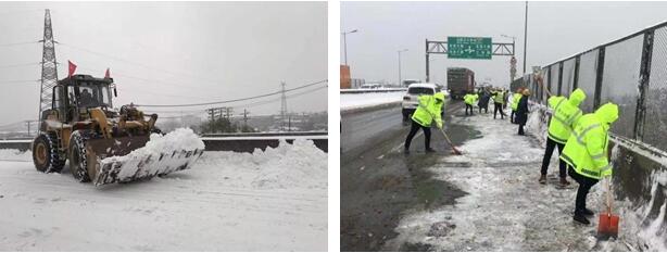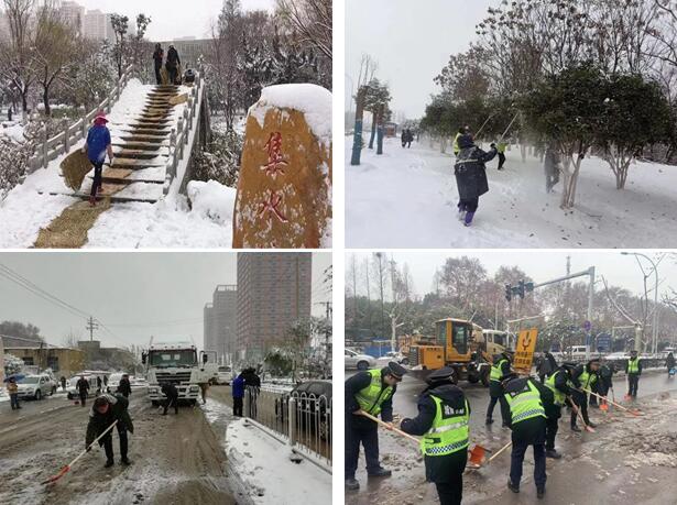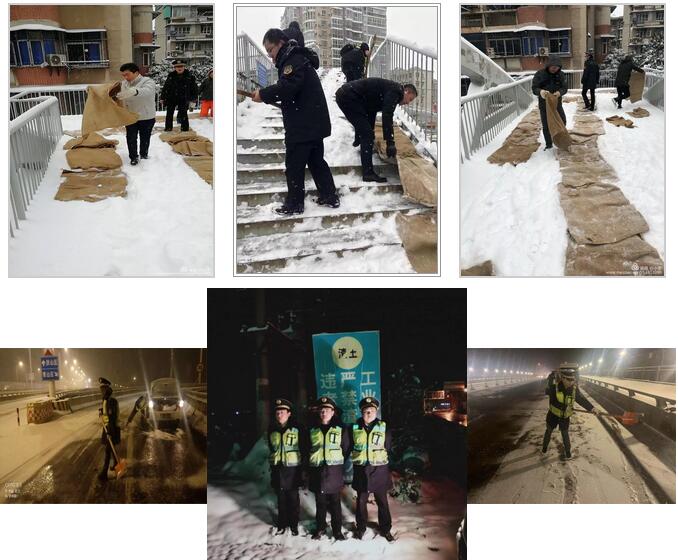 区交通大队出动警力150人、警车55台、牵引车5台保障全区交通秩序。区园林局绿化队对冶金大道、和平大道、八吉府大道等重点路段行道树进行人工除雪,避免积雪压断枯枝出现险情。在湖面、桥面、广场等重点隐患点位,设置警示牌260余块、警戒线21000余米、铺设草垫8500余条。为确保全区重要道路通畅,防止夜间结冰。区市政公司党委组建4个突击队、300余人,投入40台机械设备,采取热水冲、铲车铲、车辆运、人工清、撒盐融雪等多种方式,对天兴洲大桥--青化立交及和平大道四个匝道的积雪进行清理,确保交通顺畅。