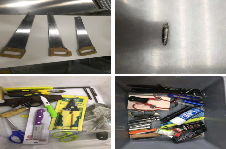 为确保安检工作得到有效落实,中心领导及站区管理人员分级对车站安检工作进行包保负责,对车站安检工作进行督察管理,确保监管责任落实到人。车站全面落实“一看、二说、三扫、四出示、五复检、六处置”的安检工作要求,确保安检标准不打折、质量不降低。自“一次性安检”实施以来,9号线共查处禁止、限制物品1412件, 5号线共查处禁止、限制物品723件。在查处的禁止、限制物品中开封白酒、日常使用的剪刀、水果刀居多,也有榔头、锯子、扳手等工器具物品。