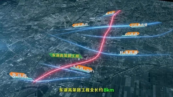 东湖高架建成后,可与杭浦高速、沪杭甬高速进行交通转换,由北往南可经杭浦高速、德胜快速路前往杭州主城及下沙,或者转机场大道前往萧山、滨江。临平组团可实现25分钟就到达萧山机场、15分钟抵达杭州市区的快速交通圈,是目前临平组团沟通杭州主城、下沙副城、江南副城、大江东以及萧山机场最为便捷的通道。