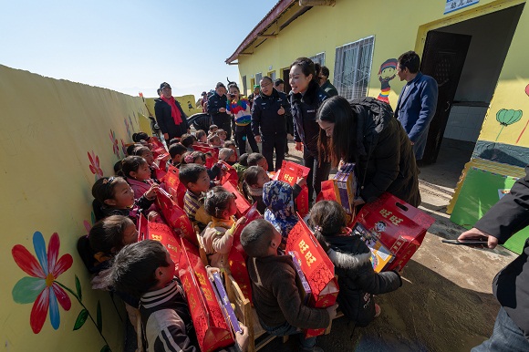 同时,周媛政委一行来到黑竹洛村幼儿园,为幼儿园的孩子们送上了旺旺大礼包以及水彩笔、篮球等一些慰问品,在现场,政委周媛同孩子们打成一片,与每个孩子亲切拥抱,祝福孩子们学习进步!