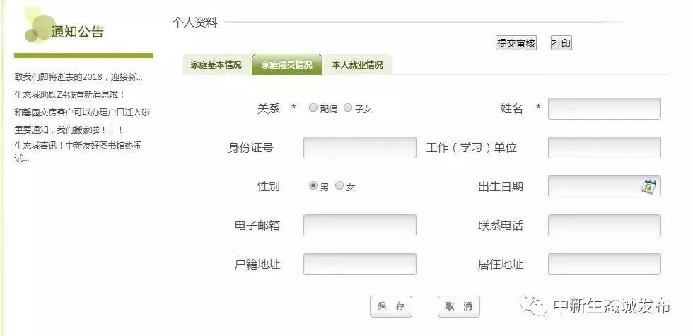 提交内容包括家庭基本情况、家庭成员情况、本人就业情况