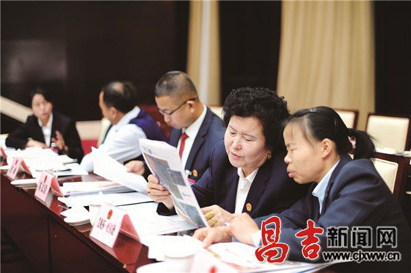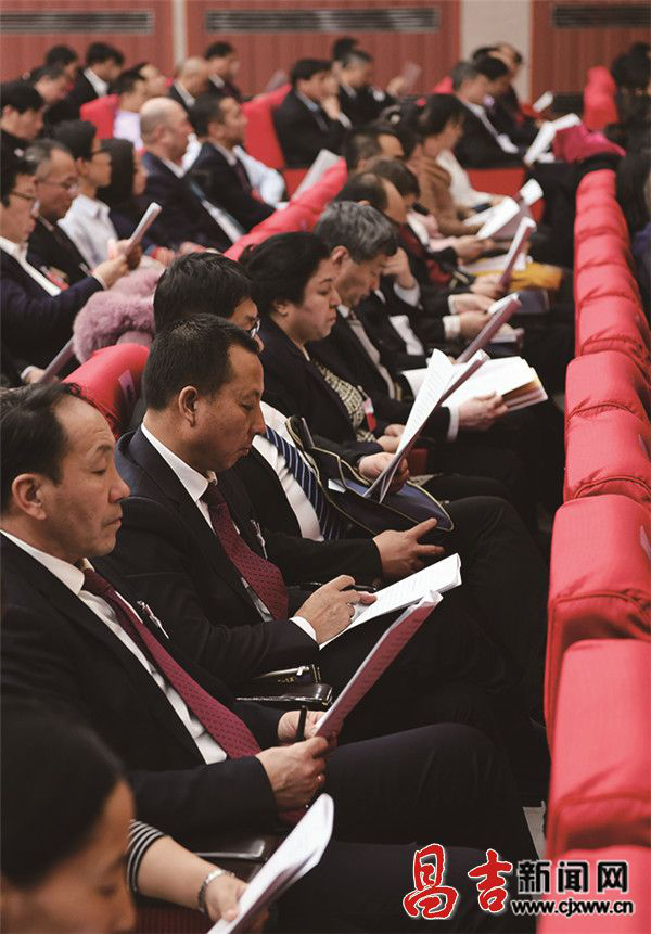 代表们通过昌吉日报了解“两会”动态。