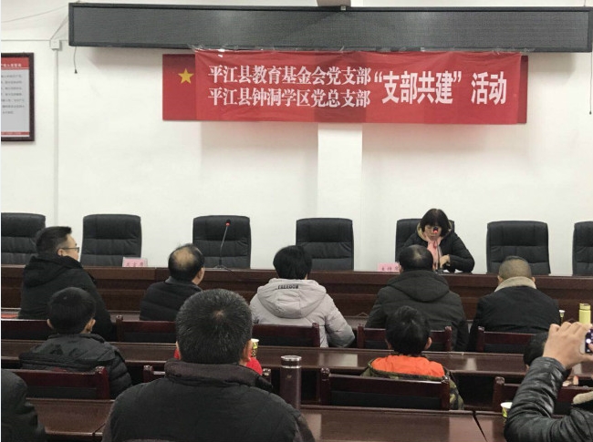 元月9日,由平江县教育基金会党支部与钟洞学区党总支部共同组织的“支部共建、助学帮困”活动在钟洞学区举行,县教体局、县教育基金会、钟洞学区相关负责人参加此次活动。