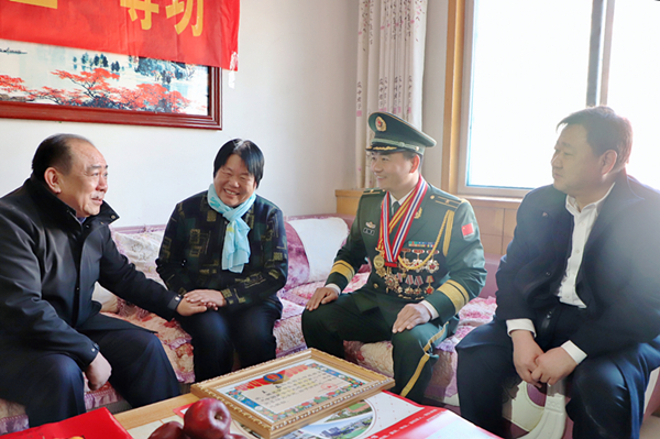 在与王磊及其家人的亲切交谈中,于松岩一行耐心细致地询问了其生活、身体及家庭情况,对王磊在部队为家乡人民增光添彩,为部队建设和人民幸福安康作出的突出贡献给予了高度评价,并对家属支持军人报效祖国表示感谢。