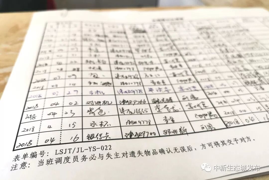 生态城的每个公交场站里,都有一个“失物登记认领本”,上面详细记录着遗失时间、物品名称、公交车牌号、驾驶员、调度员、领取时间、领取人、联系方式等信息。这个登记本就像一笔“账目”,清清楚楚记录着公交车上的“物品收支情况”。