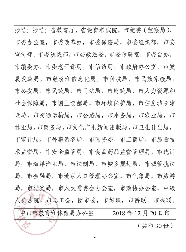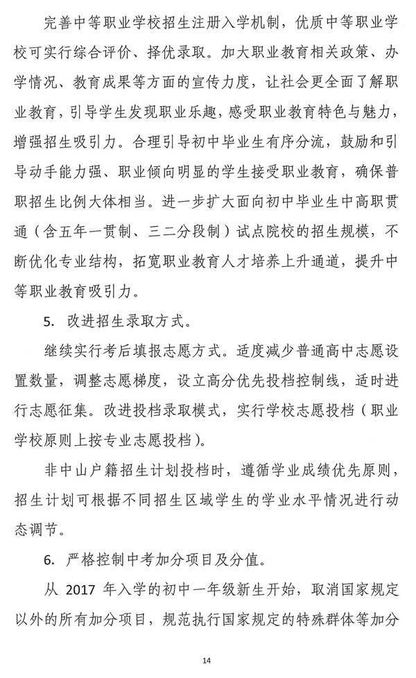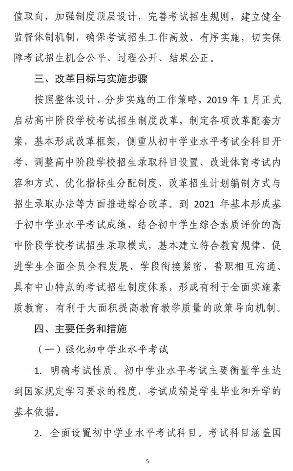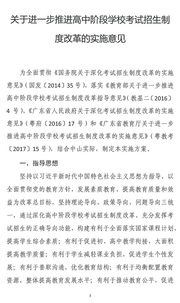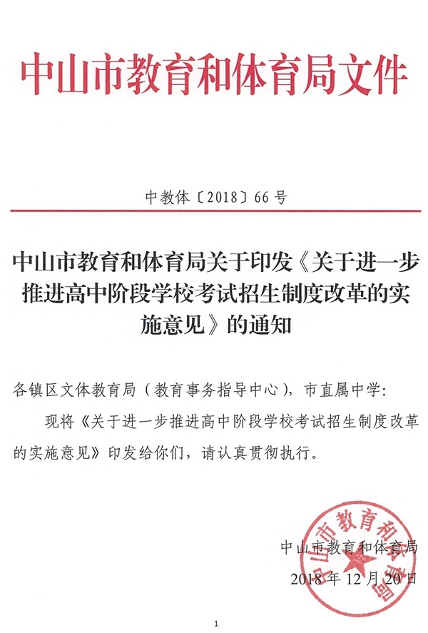 中山市教育和体育局关于印发《关于进一步推进高中阶段学校考试招生制度改革的实施意见》的通知
