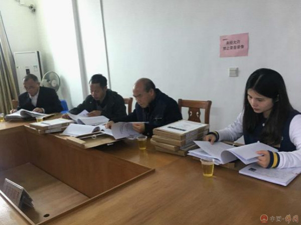 (市、县检察院检查组一行人在查看社区矫正人员的个人档案等日常管理资料)